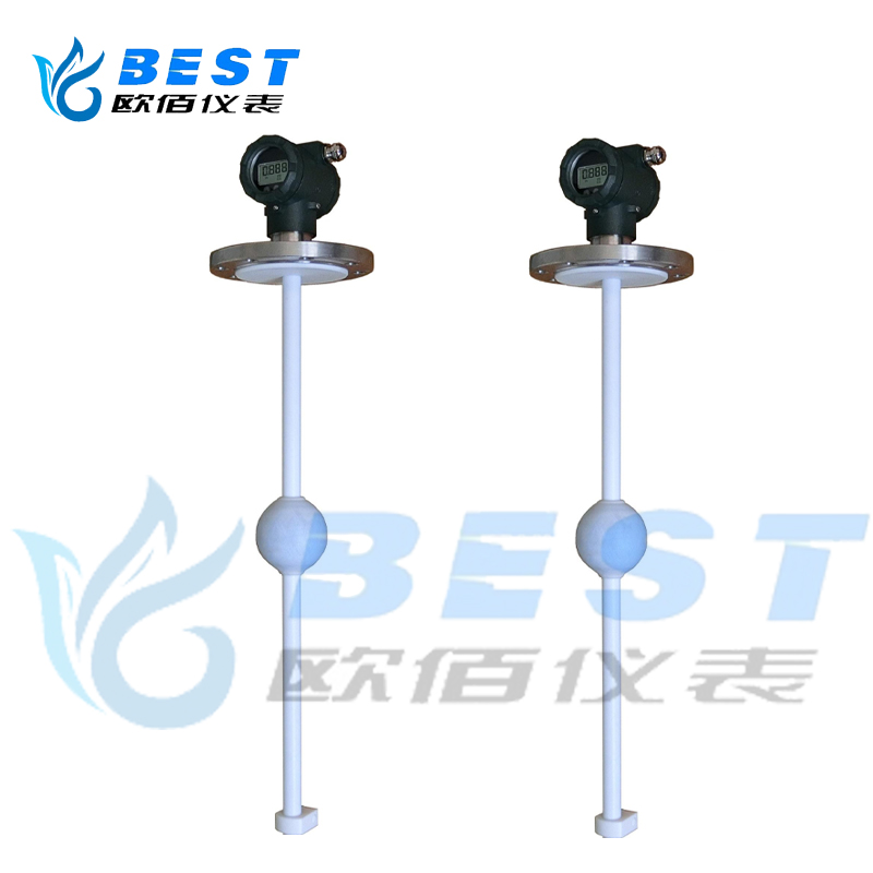 防腐式浮球液位計由浮球、插桿等組成浮球液位計通過連接法蘭安裝于容器頂部,浮球根據(jù)排開液體體積相等等原理浮于液面,當(dāng)容器的液位變化時浮球也隨著上下移動,由于磁性作用,浮球液位計的干簧受磁性吸合,把液面位置變化成電信號,通過顯示儀表用數(shù)字顯示液體的實(shí)際位置,浮球液位計從而達(dá)到液面的遠(yuǎn)距離檢測和控制。