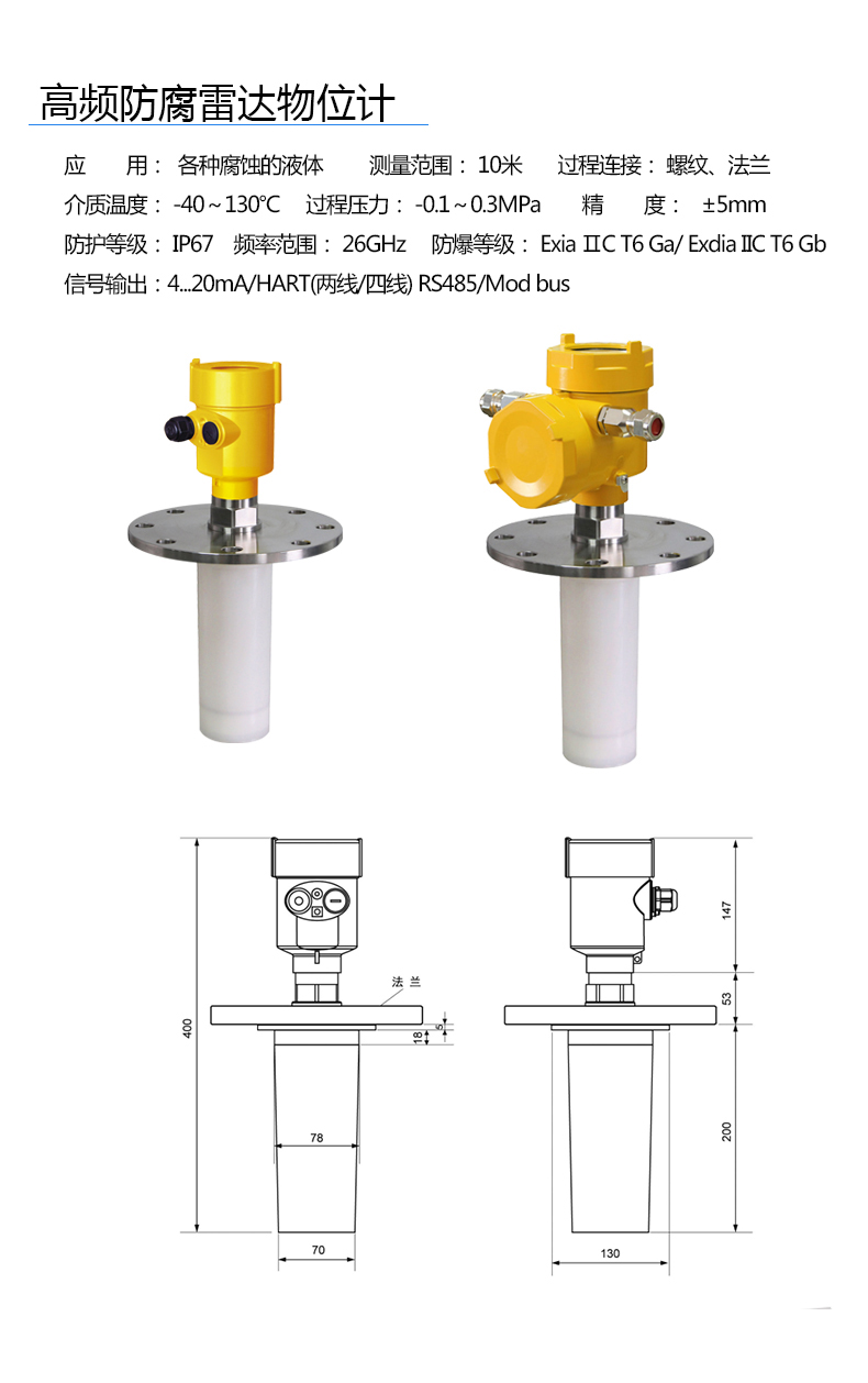 通用性強(qiáng):可測(cè)量液位及料位,可滿足不同溫度、壓力、介質(zhì)的測(cè)量要求,最高測(cè)量溫度可達(dá)800℃,最大壓力可達(dá)5MPa,并可應(yīng)用于腐蝕、沖擊等惡劣場(chǎng)合。