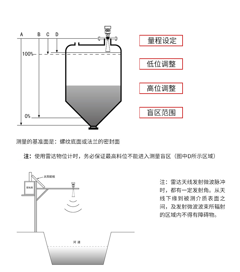 頂部盲區(qū)是指物料最高料面與測(cè)量參考點(diǎn)之間的最小距離。