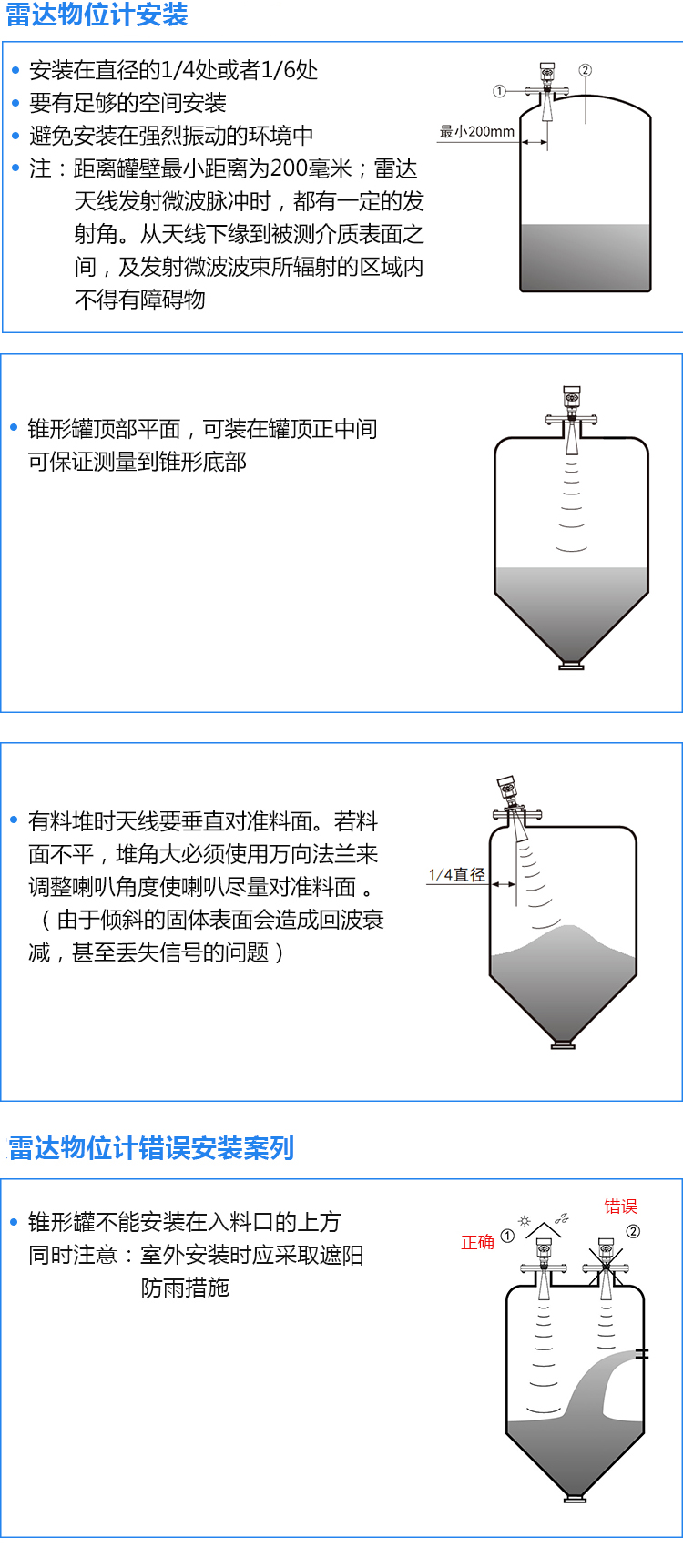 頂部盲區(qū)是指物料最高料面與測量參考點之間的最小距離。