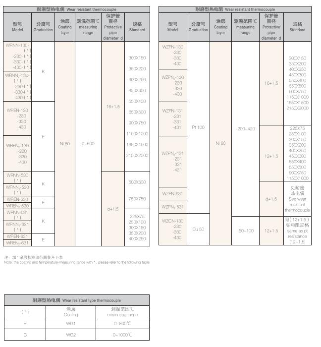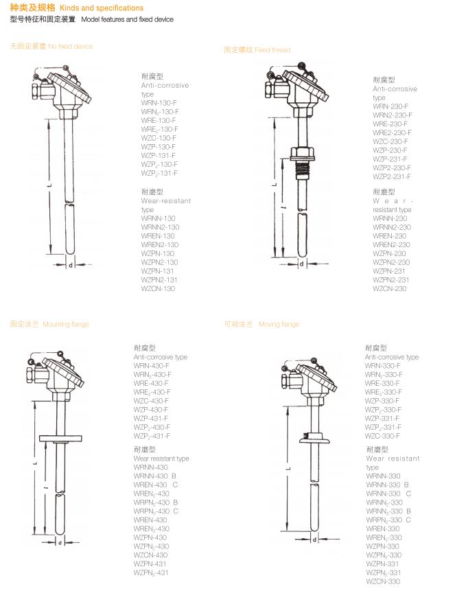 耐磨熱電阻的選型型譜