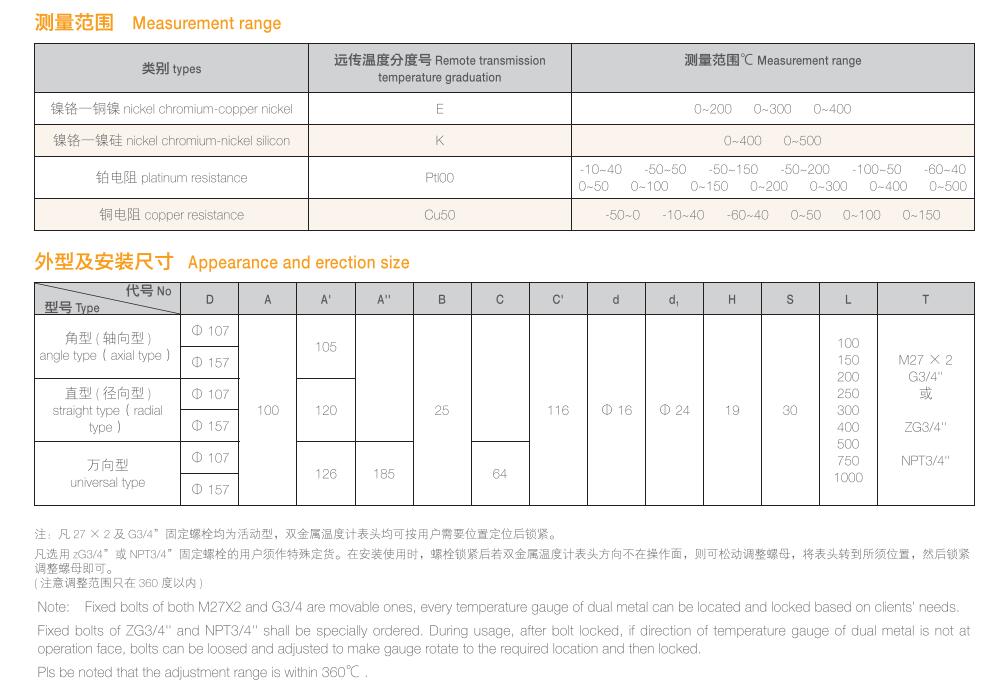 a. 分度號:E(鎳鉻—銅鎳)允許偏差±2.5℃或0.75%t